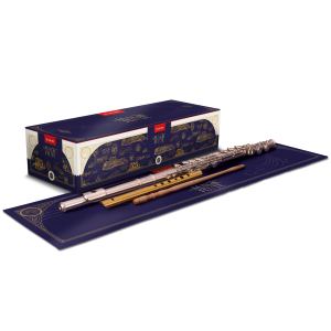 Zusätzlich enthalten ist ein attraktives Samttuch im Magic Flute Design, für eine sichere Ablage der Instrumente, sowie ein mit dem Magic Flute Logo gravierter Wischerst